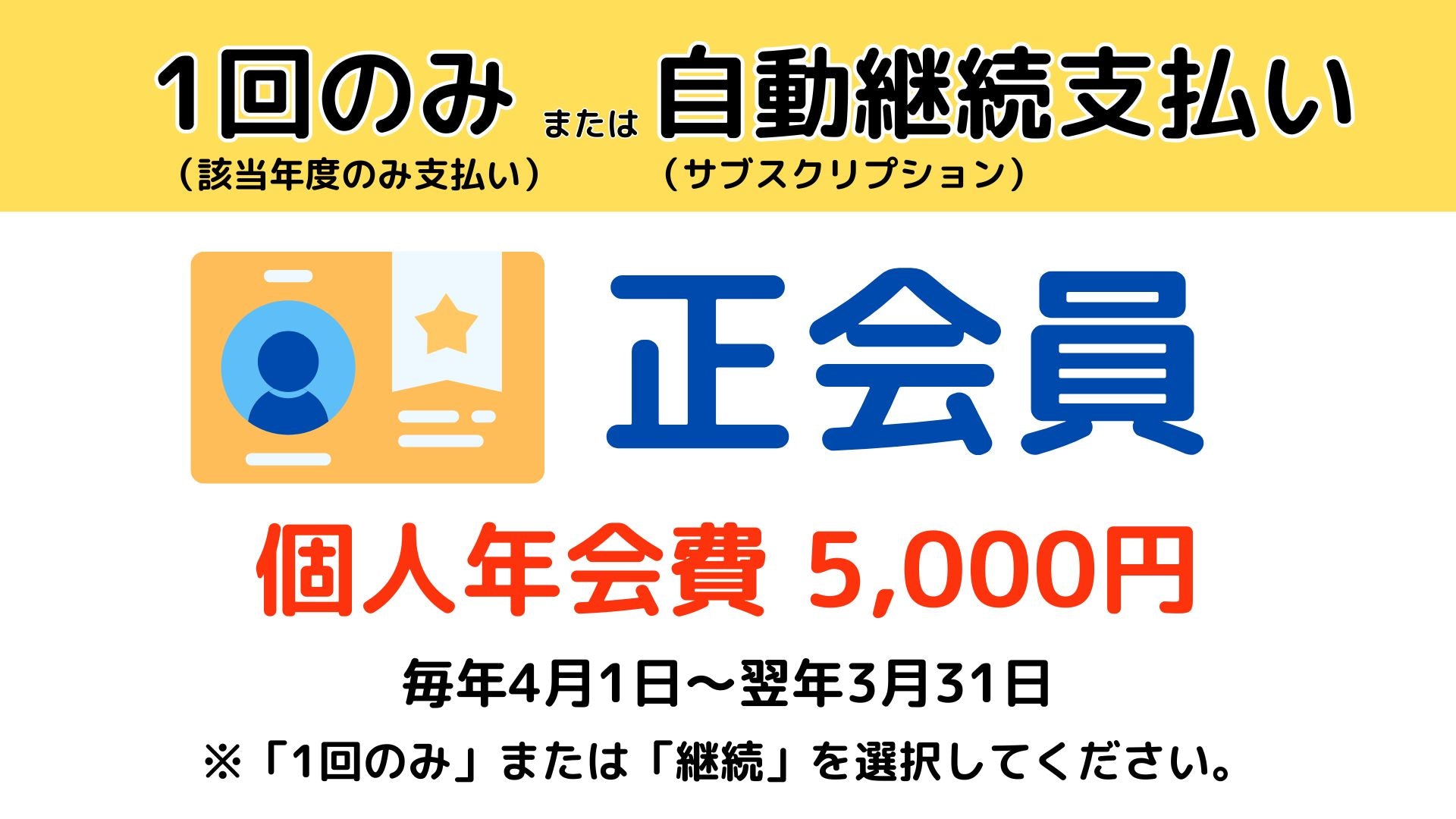 ■1回のみ:手続きをいただくと今回のみ会費が引き落とされます。毎年支払い手続きが必要です。